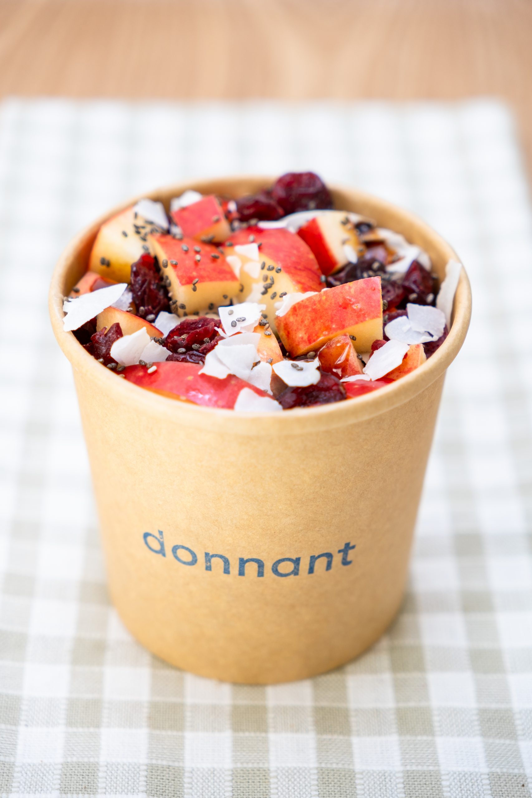 Lait de coco, curcuma, pomme, cranberries, coco, sirop de datte, graines de chia